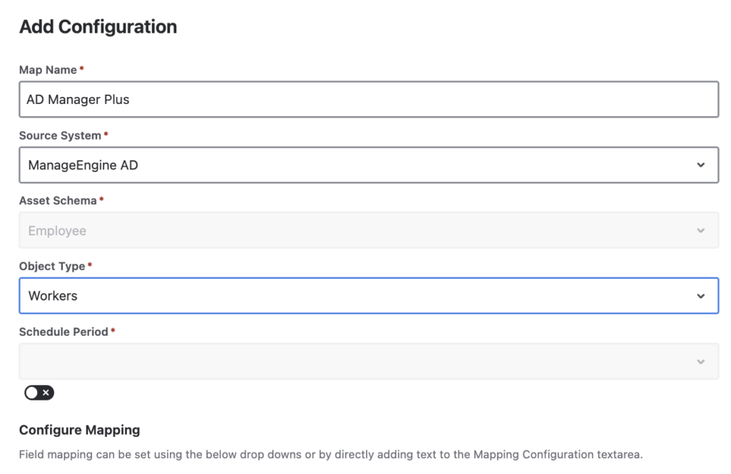 OnLink connects to AD Manager Plus via its REST API, pulls user data on a configurable schedule, and maps it into your Assets schema. The process follows a straightforward pattern: