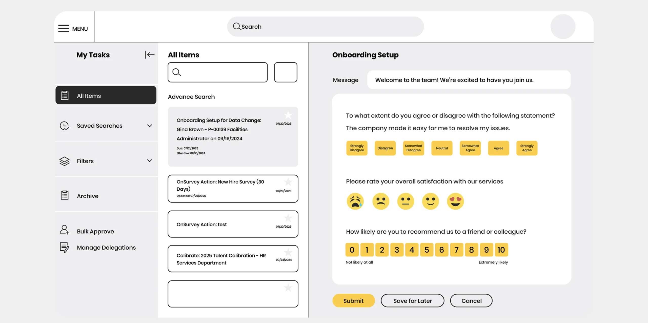 OnSurvey is a built-on Workday app for surveys, assessments, feedback and intake forms.